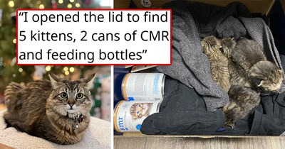 i.chzbgr.com/thumb400/43809797/hA65CE6C9/in-front-of-a-chirtsmas-tree-i-opened-the-lid-to-find-5-kittens-2-cans-of-cmr-and-feeding-bottles (seen on 2 websites)