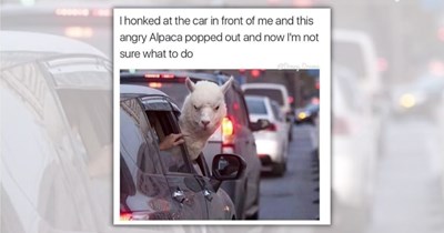 i.chzbgr.com/thumb400/43848965/h06E0FB59/the-car-in-front-of-me-and-this-angry-alpaca-popped-out-and-now-im-not-sure-what-to-do-donny_drama (seen on 2 websites)